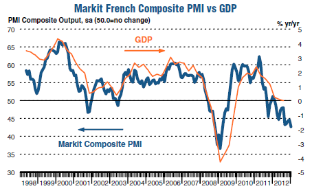 - Final Markit France Composite Output Index(2) at 42.7 (44.6 in December), 46-month low.
