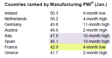Chris Williamson, Chief Economist at Markit offered this interpretation: “The eurozone is showing clear signs of healing, with the downturn easing sharply in January and the region moving closer to stabilisation in the first quarter. ….”