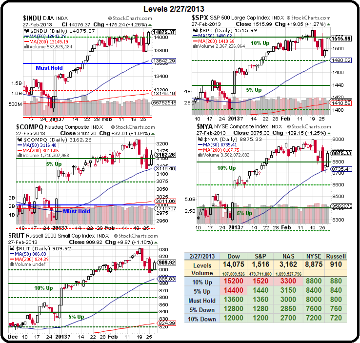 The Dow is already over it's previous high so we'll be looking at adding some Dow components today and tomorrow – in case they get away from us.  As the S&P is testing our 10% line, they are the logical index to watch closely and we also have a very clear indicator of when to get out of the short hedge with a small loss if they do pop 1,520 and hold it over the weekend (or if AAPL finally gets going, of course).