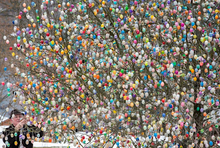 Each year, Volker Kraft decorates an apple tree with more than 10,000 colourful eggs in Saalfeld, Thuringia, to celebrate Easter and the arrival of spring.