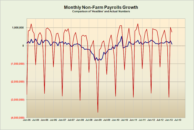 However I thought it was a trend worth watching. I had been wondering if the BLS would use a 'conservative' approach in their 'headline announcement' this month which might reflect the impact of sequestration, and provide some context for President Obama's budget which he is just releasing.