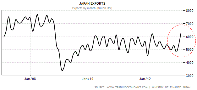 Japan's "Merchandise Trade" exports surprised to the upside this morning. All of a sudden Japan's export activity is picking up steam.