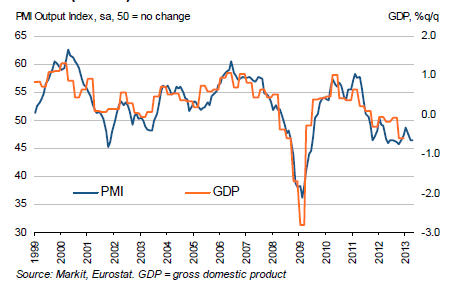 As expected in this corner, the Markit Flash Germany PMI® shows German private sector output declines for first time since November 2012.