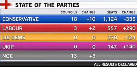 The UK Independence Party has made huge electoral gains and declared itself the “official opposition” – largely at the expense of the Tories – as Prime Minister David Cameron vowed to win back Conservative voters who had defected.