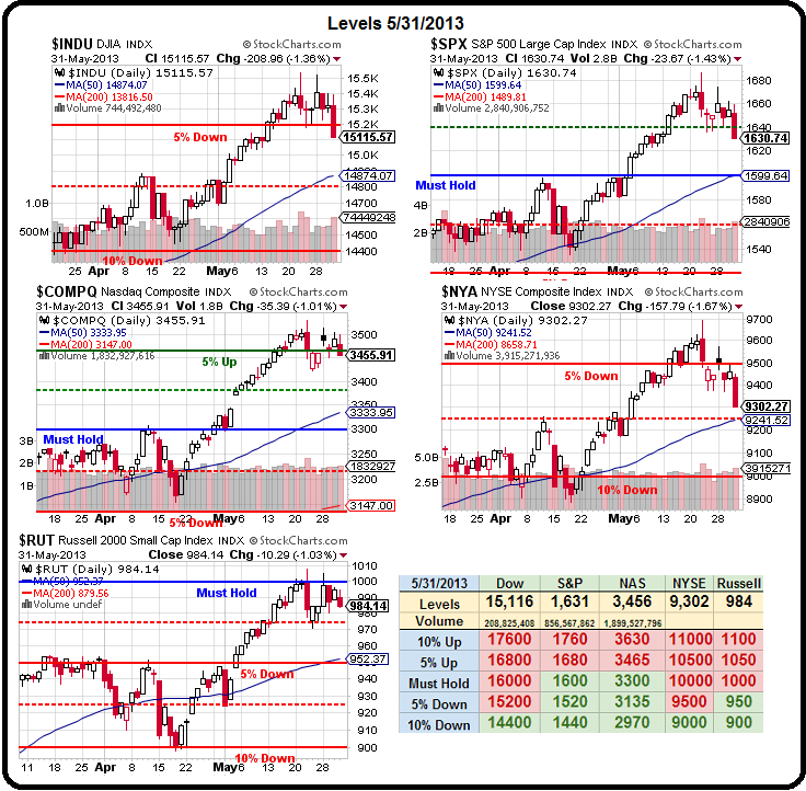 The Russell has been unable to break our 1,000 target and the Dow has failed to make our 16,000 Must Hold level and the NYSE has not been close to 10,000 and, as I warned just this Thursday morning, ahead of Friday's 200-point drop, the Dow had no real support all the way to 15,200. As it turned out, we bottomed out at 15,115 down just about the requisite 2.5% from our week's high.