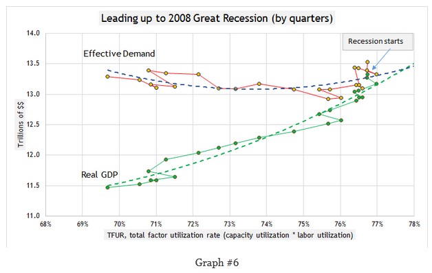 Taking "wonkishness" at least an order of magnitude higher, Edward Lambert writing for the Effective Demand blog actually attempts to determine True Potential Real GDP by looking at previous recessions.