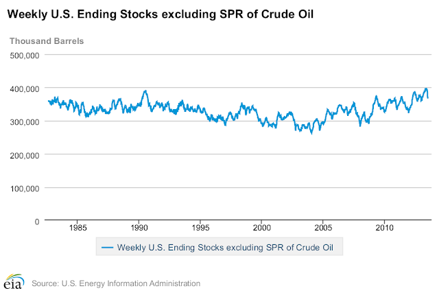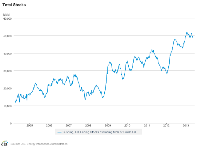 For all those who believe that Cushing Oklahoma inventories have dramatically gone down due to the all the pipeline and rail transportation options being developed take a look at the actual data.