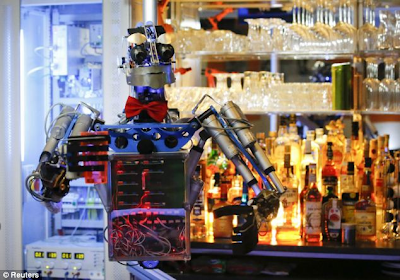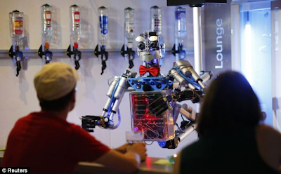 The humanoid robot mixes drinks for guests at the Robots Bar and Lounge in Ilmenau, eastern Germany.