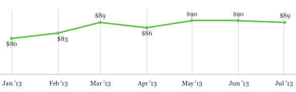 Lower- and middle-income spending averaged $78 per day in July, similar to the $77 per day in June and May, and the $75 in March. Spending by this group in 2013 has been in a relatively narrow range, from a high of $78 last month to a low of $70 in January.