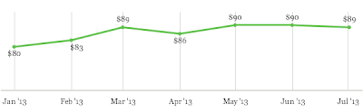 Upper-income spending inched up to $158 in July, from $143 in June and $150 in May. But the upper-income spending data tend to be more volatile due to the smaller sample sizes involved, and the overall trend seems to be essentially flat over the past five months — with a peak of $166 in March and a low of $140 in April.