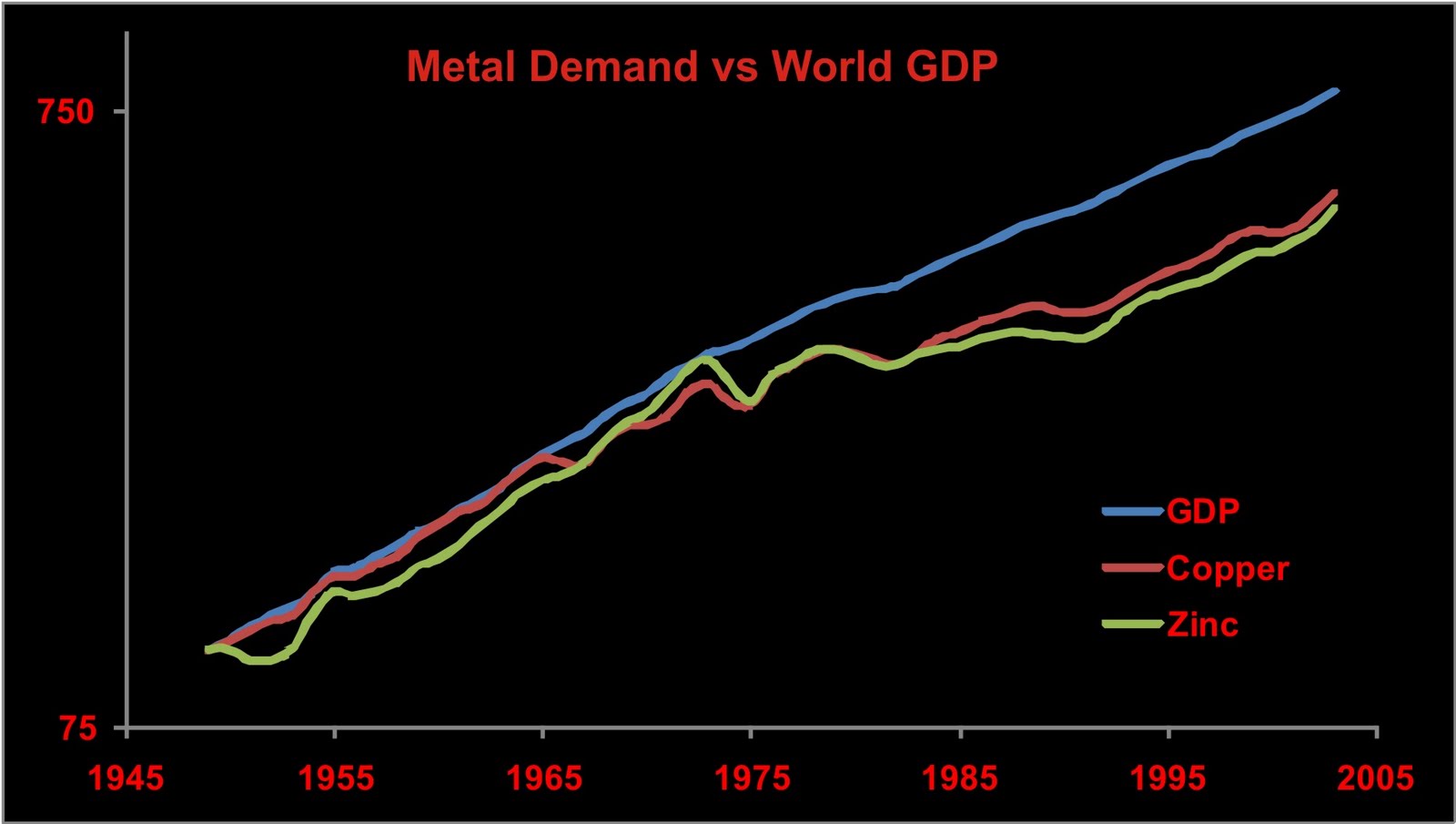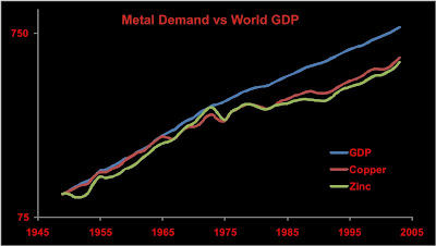 It is difficult to imagine just how the economy grows without similar increases in the use of copper and zinc, both of which are tough to replace. One comment wondered if we replaced copper and zinc with plastics. Some piping maybe. But not much wiring.