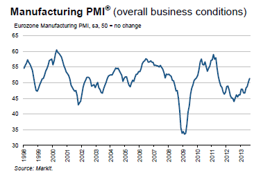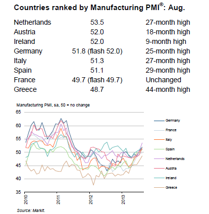 The Markit Eurozone Manufacturing PMI® shows Final Eurozone Manufacturing PMI at 26-month high of 51.4 in August (July: 50.3).
