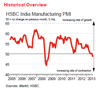 India Manufacturing PMI Contracts for First Time Since March 2009