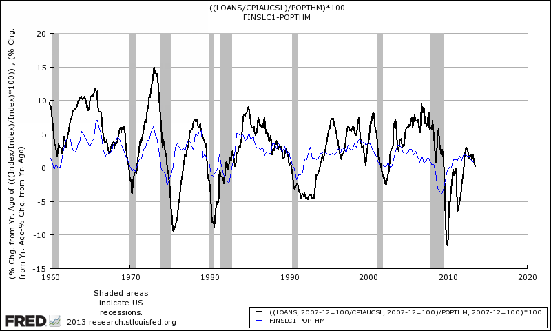 Growth in Bank Lending Per Capita (Black), Real Final Sales Per Capita (Blue)