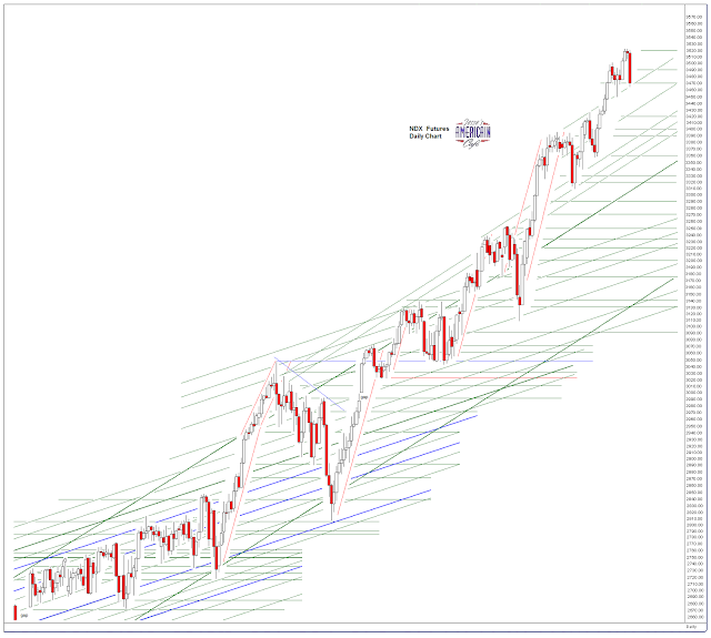 US stock indices fell back to key support and trendlines today in a relatively light volume controlled selloff.