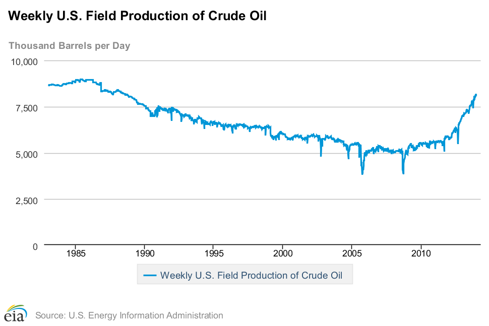 In reviewing the EIA weekly petroleum report, the oil imports figure came in at 6.889 (Million Barrels per Day) for the week ending 01/10/14. This number compared to a year ago 8.030 (Million Barrels per Day) puts a nice cap on the downtrend which really started gaining steam in 2010 onward.
