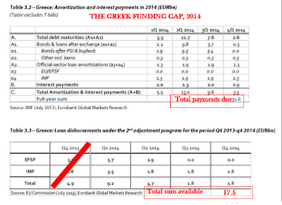 The scam works like this: bailout money is allegedly given to Greece, but Greece cannot really touch it. Instead the money goes right back to the Troika to for interest and capital payments, with perhaps a miniscule portion finally getting to Greece.