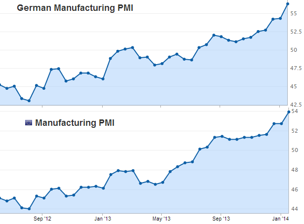 Germany remains the euro area's powerhouse, with manufacturing expansion there accelerating further, driving up the aggregate measure.