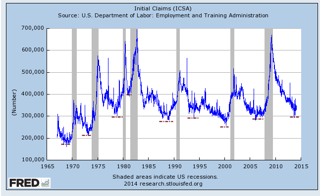 Once claims bottom then start to rise, the above chart shows a recession usually follows. The only exception was 1993, smack in the middle of an internet boom.