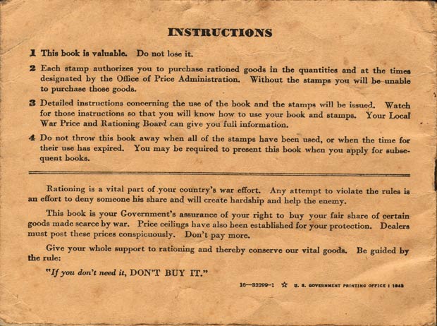 Here’s the front cover of War Ration Book no. 3, issued in 1943 :