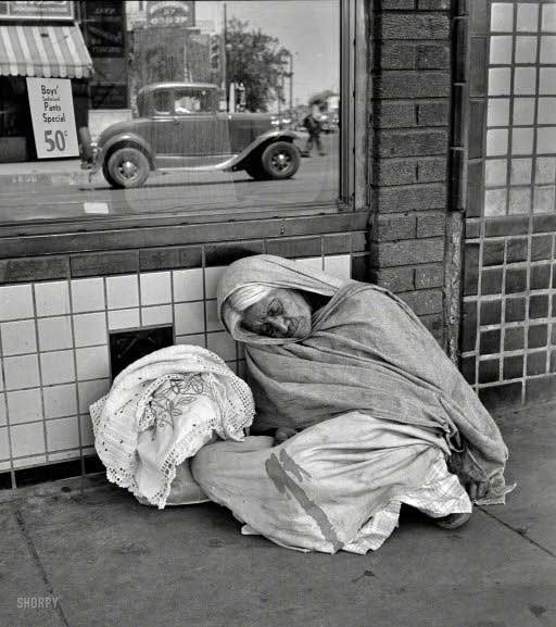 Dorothea Lange Sleeping gypsy in El Paso, Texas, waiting for streetcar to Mexico June 1938