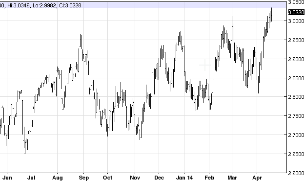 | June 2014 gasoline futures (RBM14) (source: barchart) |