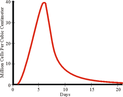 Figure 1. Growth of yeast in a 10% sugar solution (After Dieter, 1962:45). The fall of the curve is slowed by cytolysis, which recycles nutrients from dead cells.