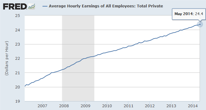 - Real average hourly earnings for production and nonsupervisory private employees rose 0.3 percent, seasonally adjusted, from May 2013 to May 2014.