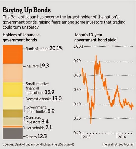 Congratulations go to the Bank of Japan who is now the largest holder of the nation’s government bonds. But no worries. This week Lord Turner of Ecchinswell, a former chairman of the UK’s Financial Services Authority (FSA) suggested that the bonds the Bank of England purchased as part of QE should be “monetized”. The bonds would remain permanently on the central bank’s balance sheet without the government ever paying them off. Of course it’s unlikely to happen in the UK in the near future, but Japan looks like a perfect candidate for monetization.