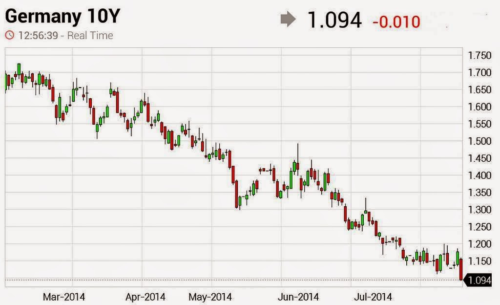 The collapse in German government bond yields accelerated in response, reaching another record low.