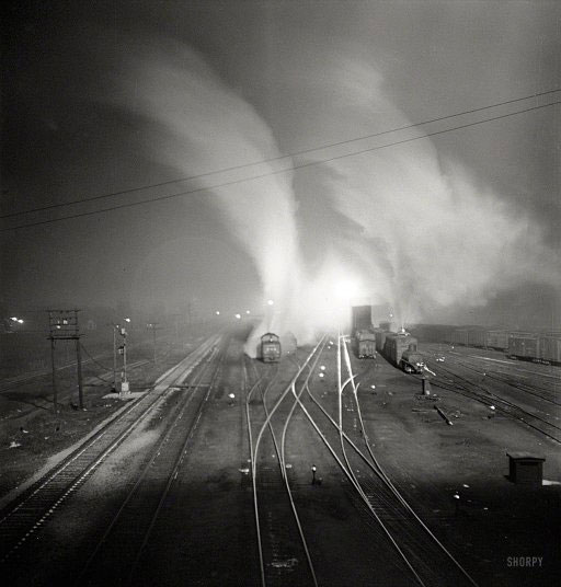 Jack Delano Freight train leaves Santa Fe rail yard for West Coast, Argentine, KS Mar 1943
