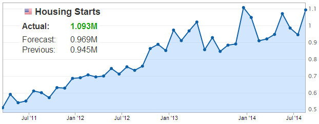 As discussed in yesterday's post on residential construction, today's report on US housing starts indeed showed significant improvements.