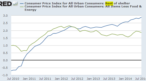 | Rent inflation vs. Core CPI |