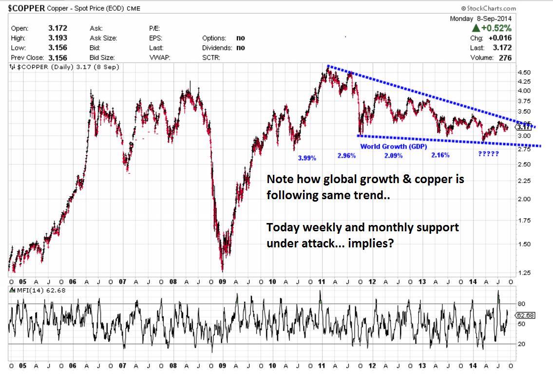 Inquiring minds may be wondering what copper has to say about future economic growth. The following charts will explain.