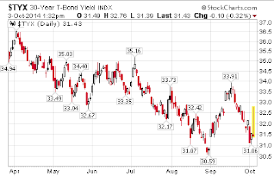 Note: The above chart is off by a factor of 10. At the time I snapped that chart, the 30-year treasury yield was 3.143%