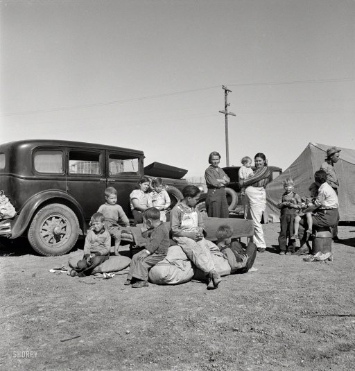 Dorothea Lange 4 families, 15 children, from Texas Dust Bowl, in roadside camp, Calipatria, CA Mar 1937