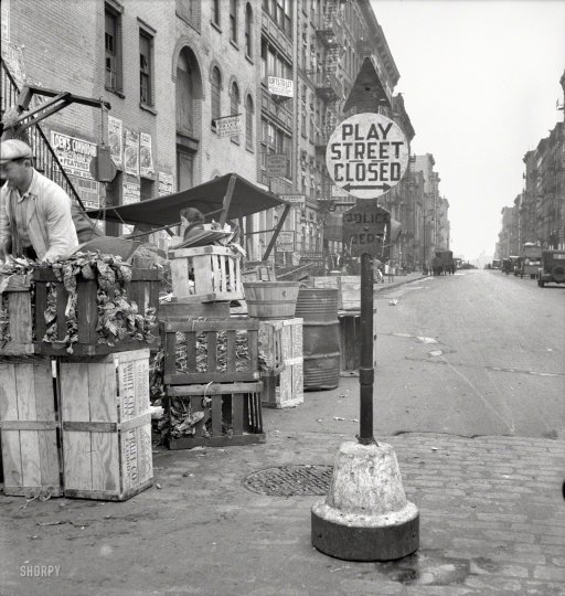 Dorothea Lange Play street for children. Sixth Street and Avenue C, NYC June 1936