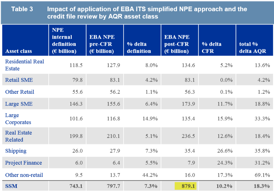 There is €879 billion in nonperforming loans but the report concludes bank assets are only €48 billion overstated. Apparently we are to believe there are adequate loan loss provisions for rest.