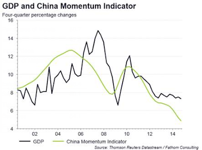 Fathom Consulting in London is calling for China’s growth to slow to 5 percent over next year or so. Not sure I fully agree, but it’s certainly possible.