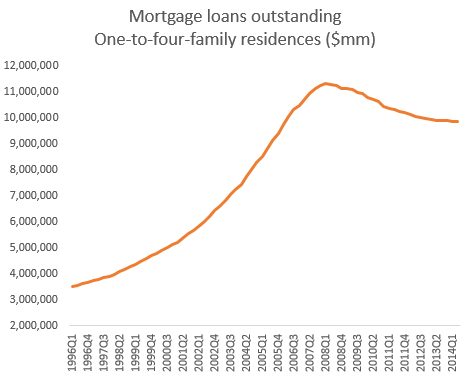 Add to that the recent increases in FHA mortgage insurance premiums (needed to replenish the FHA reserves – discussed here) for high LTV loans. Many potential first-time buyers with no ability to come up with sufficient down payment are shut out of the market.