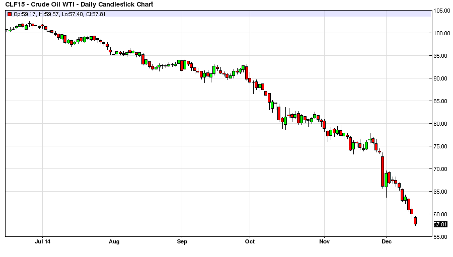 The futures contract for January 2015 has gone from $102 a barrel in July to $57 a barrel today, a $45 dollar a barrel discounting of price in less than six months. Much of this move is based upon bearish sentiment and future expectations for oil supplies along with bearish headlines coming out of OPEC Members and the exiting of the long side of the market (Players stepping away) and a huge short trade pushing prices lower. But the question is has too much bearish sentiment been priced in too fast? Well let`s look at some EIA Inventory Data for trying to put some actual data footholds if you will on the subject.
