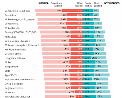 The disgusting poll of the week by the Washington Post shows From moderate Democrats to White Evangelicals, Nearly Every Demographic Group Believes Torture Can Be Justified.