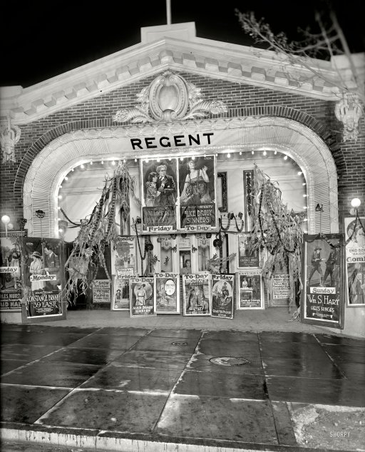 NPC Sidney Lust’s 18th Street cinema decorated for Halloween, Washington, DC Oct 1920