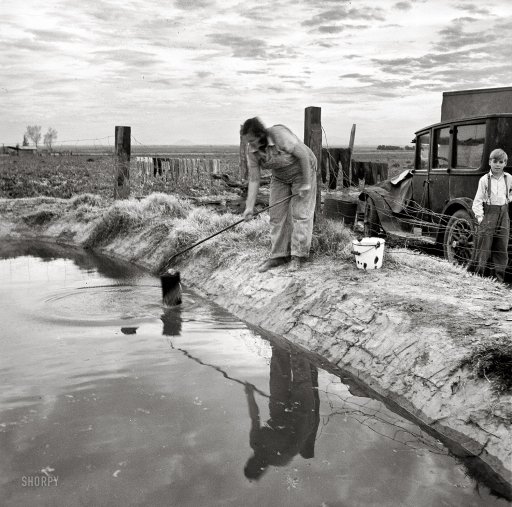 Dorothea Lange Water supply in squatter camp near Calipatria CA 1937