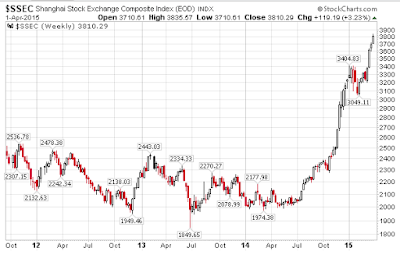 The Shanghai stock market is on a tear as the following charts show.