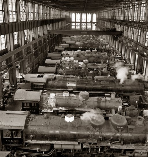 Jack Delano AT&SF Railroad locomotive shops, San Bernardino, CA 1943