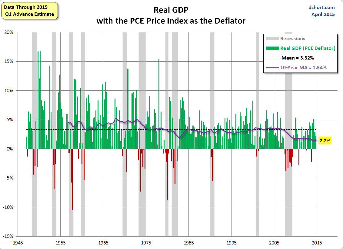 I asked Dough Short at Advisor Perspectives what the GDP would have looked like using various deflators:
