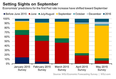The Wall Street Journal found that about 7% of the respondents think that Evans and Kotcherlakota will carry the day, and there will be no lift off this year. Interesting the survey also found that 70% that the greater danger was waiting too long to hike while 30% thought the risk was going too early.