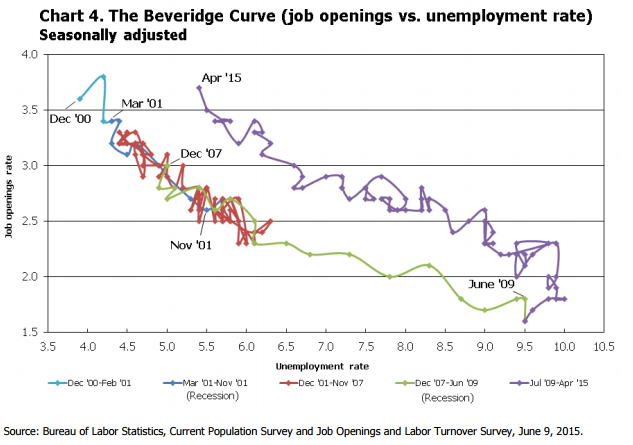 Delays in the hiring process could also mean longer period of unemployment in the economy. This trend could be partly responsible for "a notable shift in the Beveridge Curve" observed by the Federal Reserve Bank of New York.