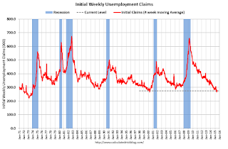 A quick graph of unemployment claims … Note: Starting with this release, the DOL is including a table of unadjusted State-level "advance"claims.